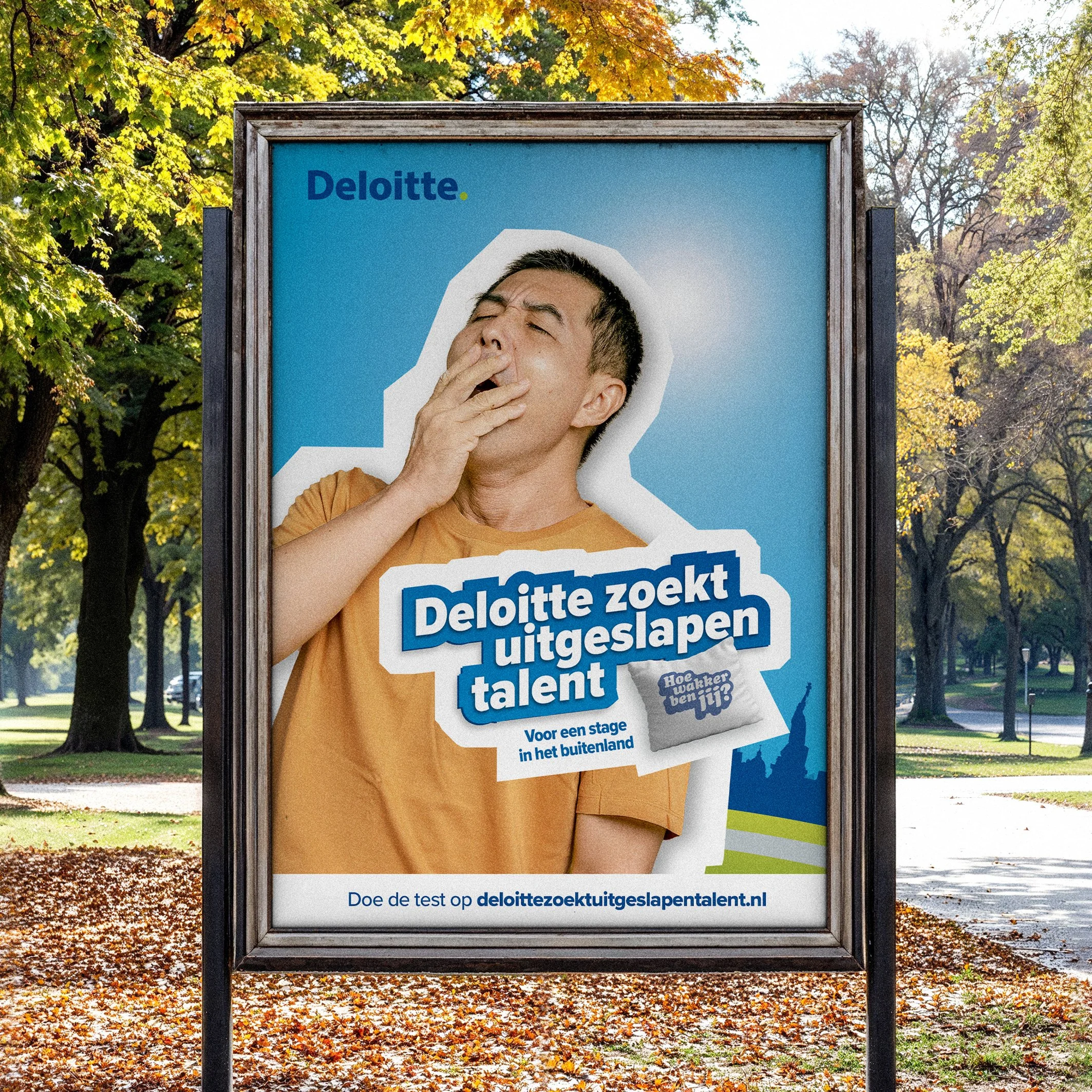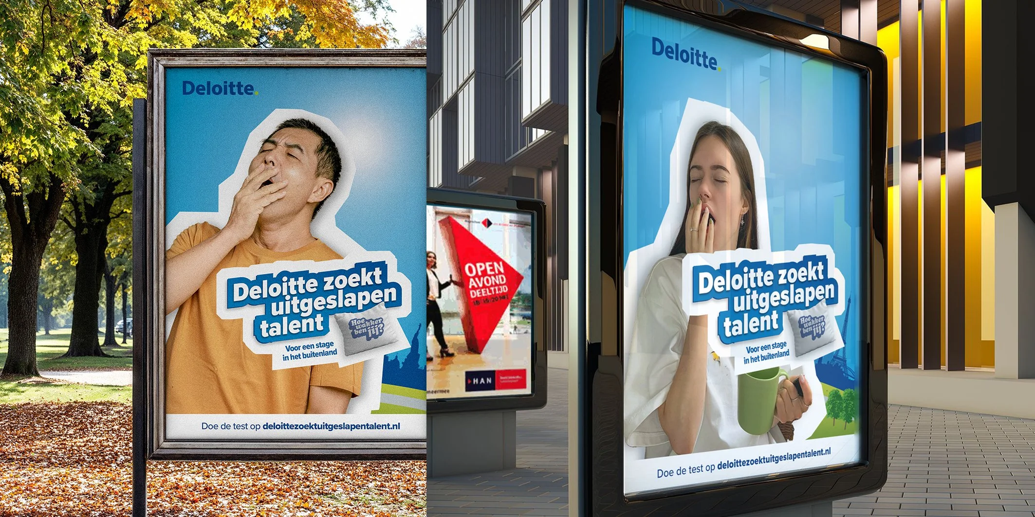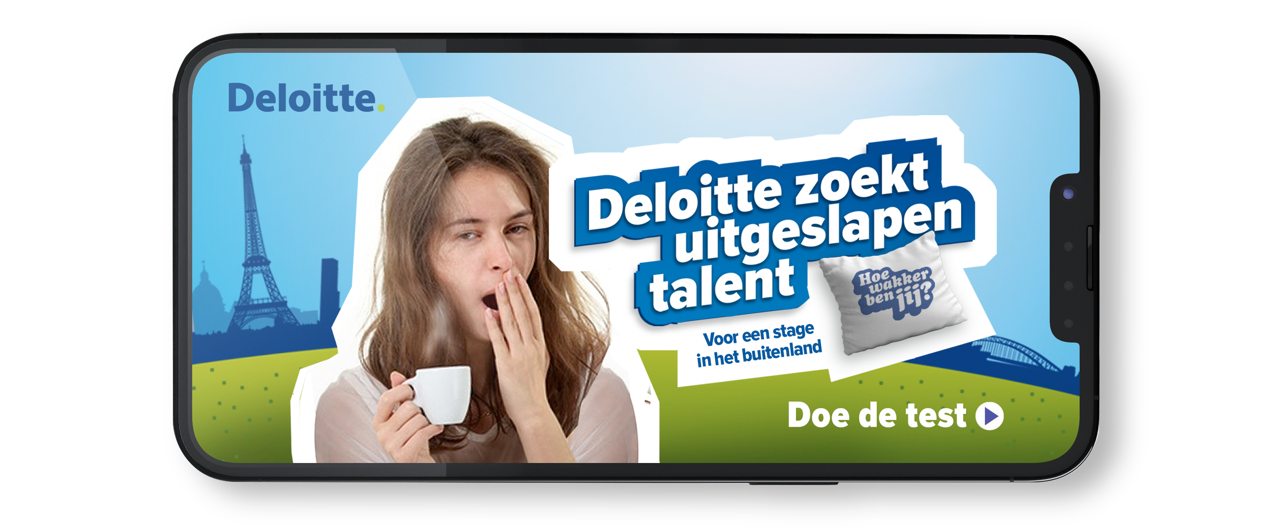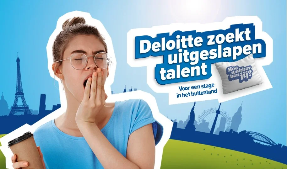 Hoe krijg je jongeren meer betrokken bij het merk Deloitte?” Met die vraag in het achterhoofd ontwikkelde ik een jongerencampagne met als thema “Hoe wakker ben jij?”. Via een online game konden studenten van hogescholen en universiteiten aantonen dat ze wakker genoeg waren voor een stage op één van de vestigingen van Deloitte in het buitenland. Door het ‘challengen’ van vrienden via de socials ging de campagne viraal..