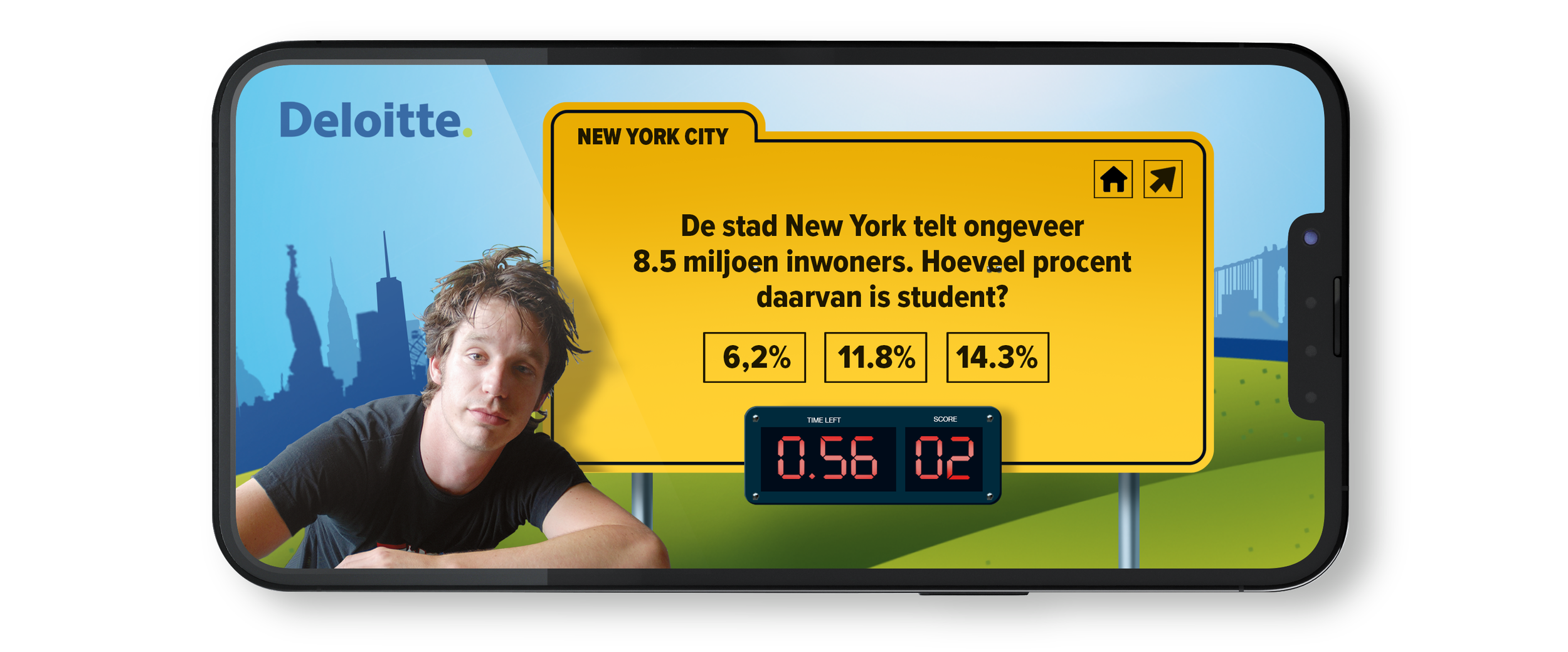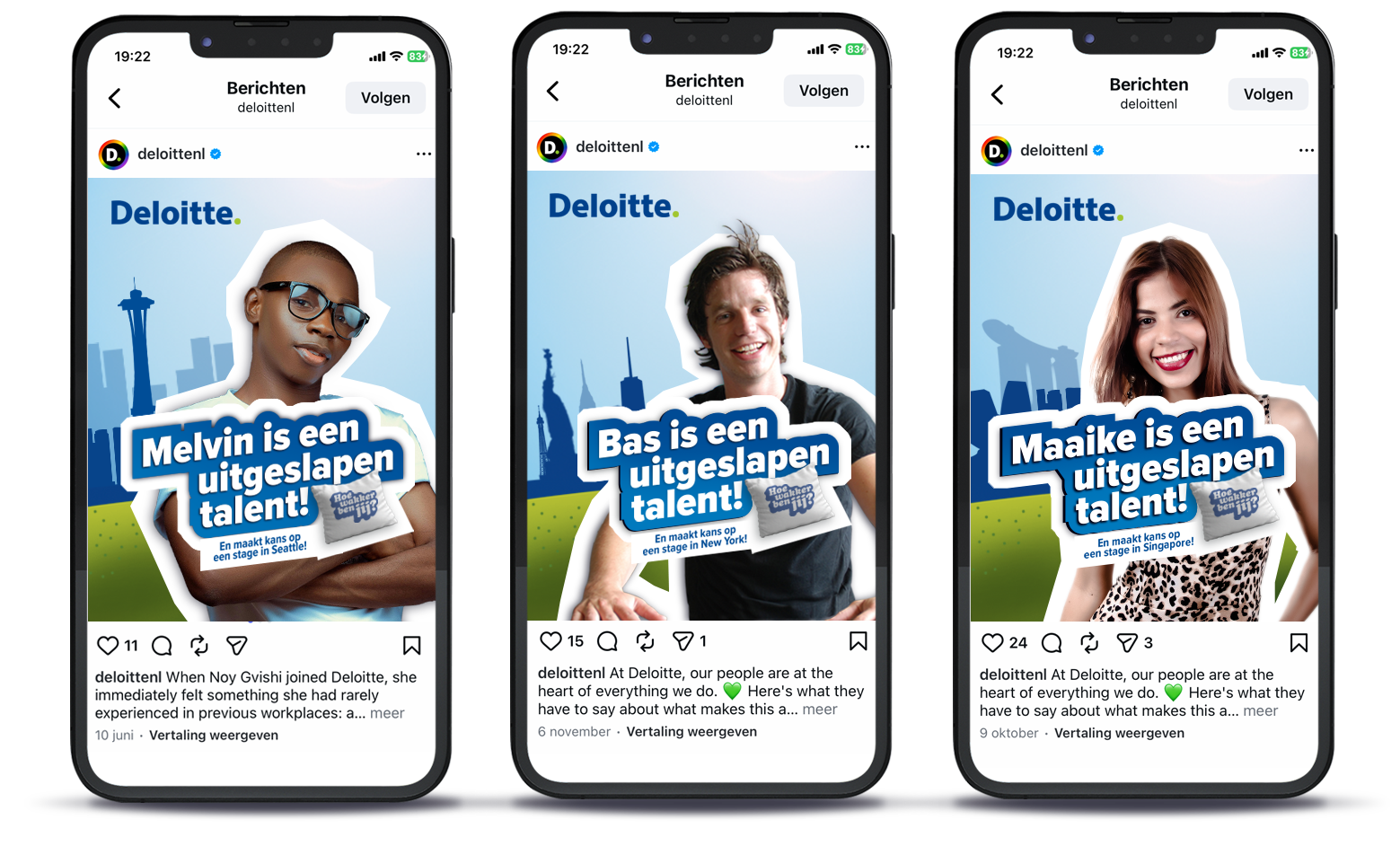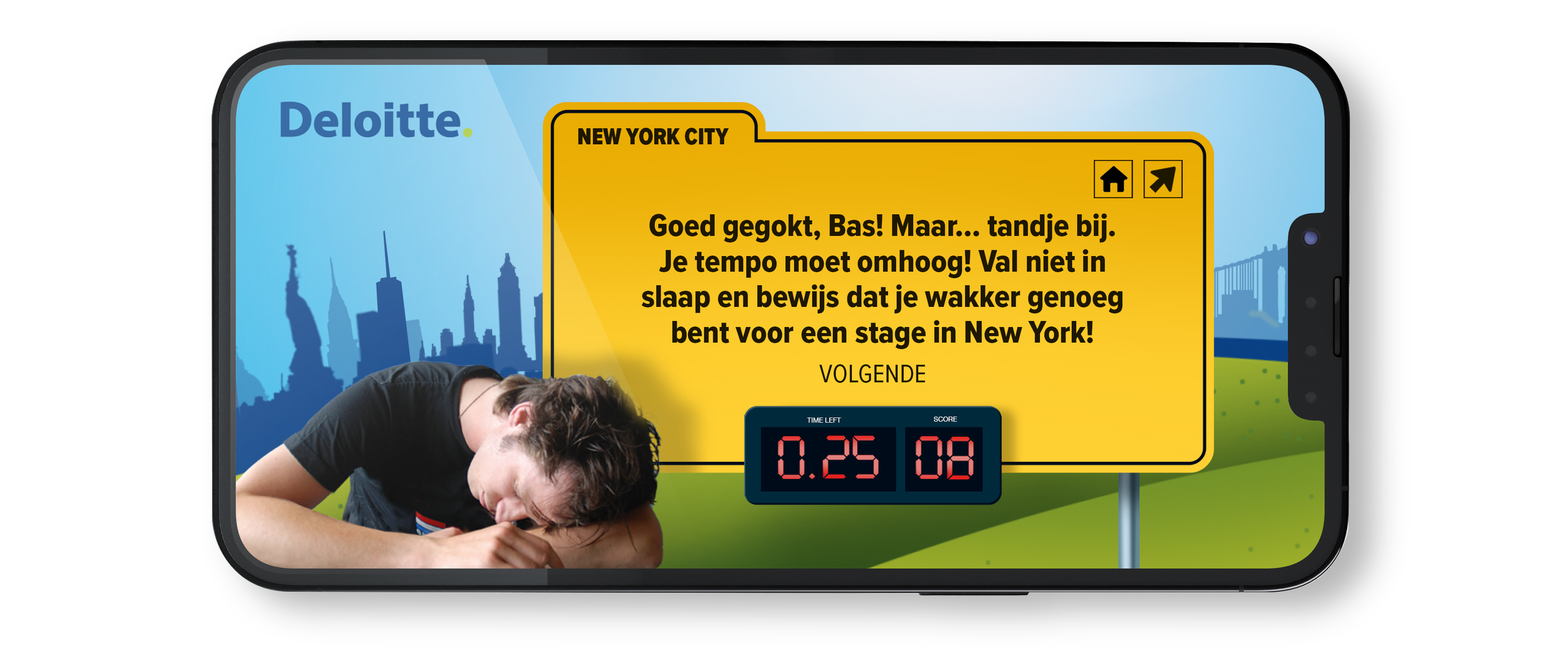 Hoe krijg je jongeren meer betrokken bij het merk Deloitte?” Met die vraag in het achterhoofd ontwikkelde ik een jongerencampagne met als thema “Hoe wakker ben jij?”. Via een online game konden studenten van hogescholen en universiteiten aantonen dat ze wakker genoeg waren voor een stage op één van de vestigingen van Deloitte in het buitenland. Door het ‘challengen’ van vrienden via de socials ging de campagne viraal..