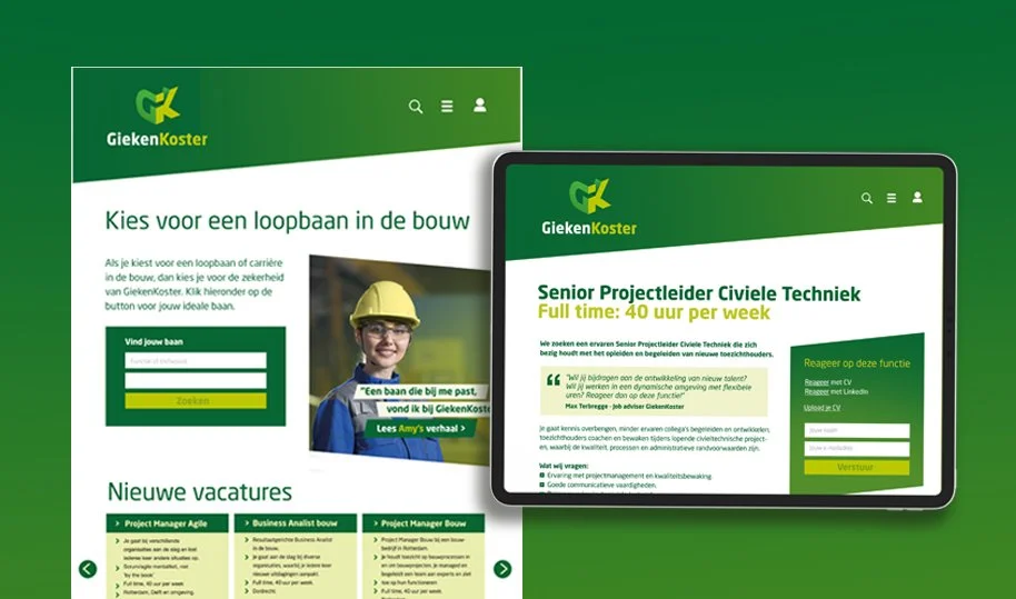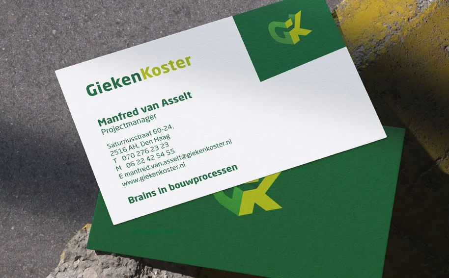 In opdracht van GiekenKoster, detacheringsbureau in de bouw, mocht ik de branding en visual identity, de communicatieslogan ‘Brains in bouwprocessen’ en de creatieve communicatie ontwikkelen.